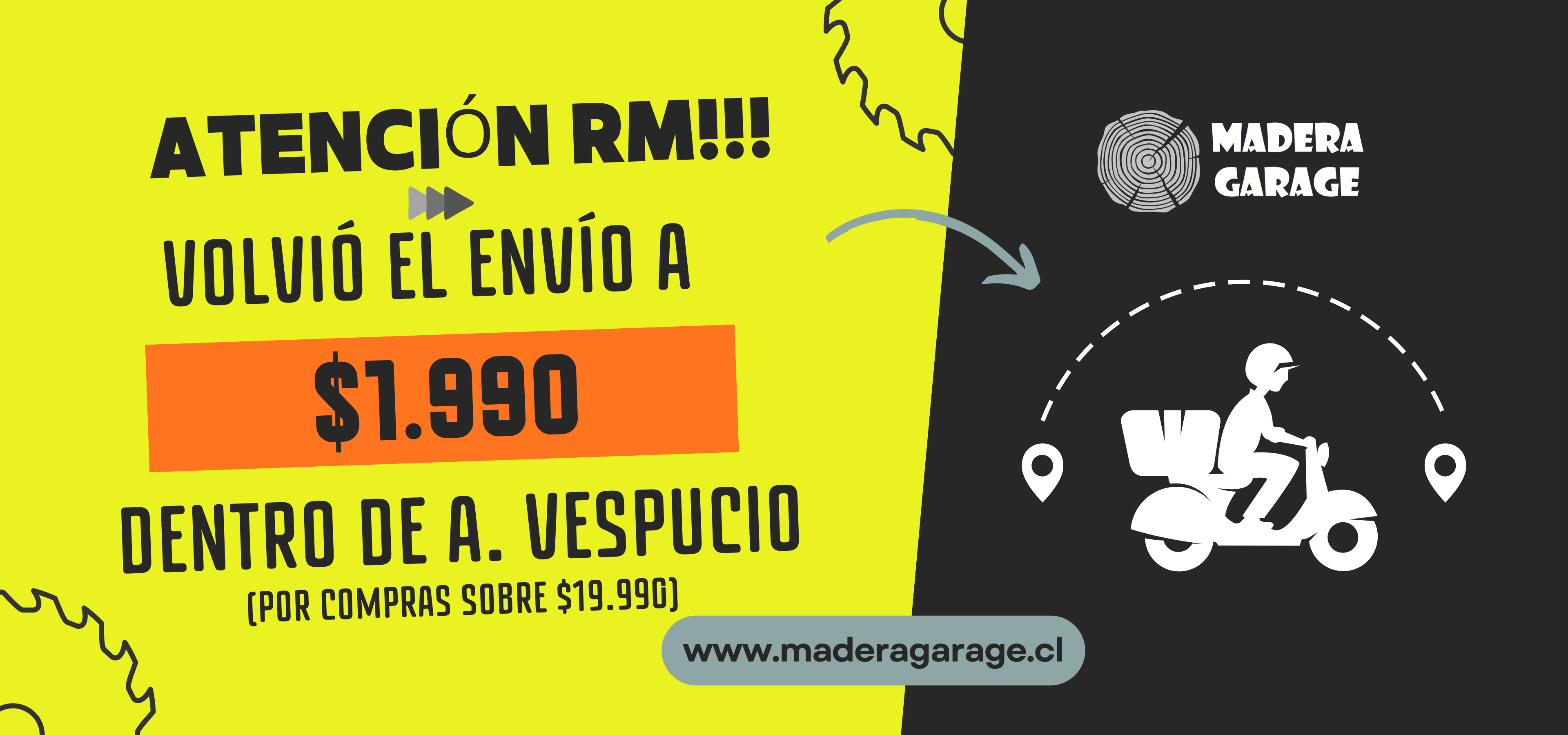 Somos de la V región… eso no nos impide enviar a todo Chile por Starken, Chilexpress, Correos de Chile, etc… si quieres acercarte a nuestra bodega busca «Madera Garage» en Google Maps y nos encontrarás!!!